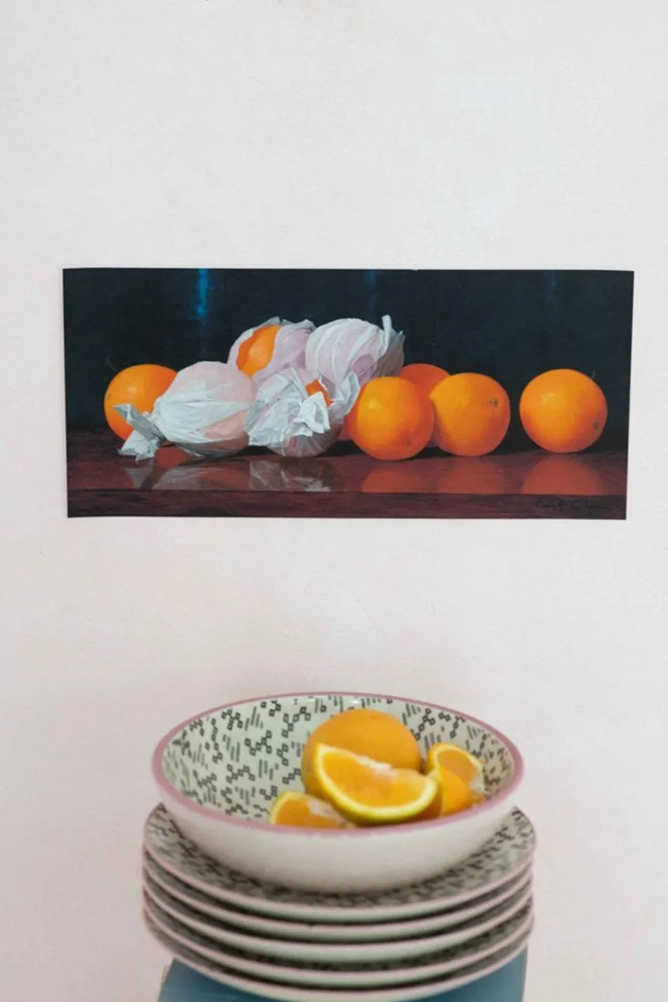 Wrapped Oranges On A Tabletop