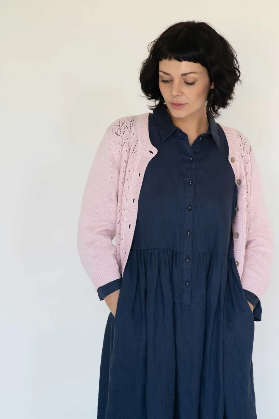 Organic Cotton Knitted Cardigan With A Pretty Pointelle Detail At The Front Bodice.
