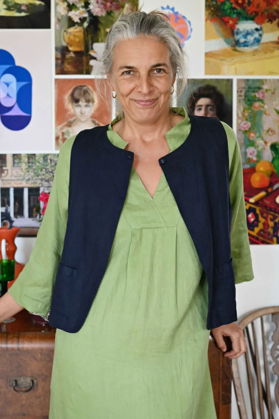 Marlo Is A Versatile Linen Vest With Front Pockets.