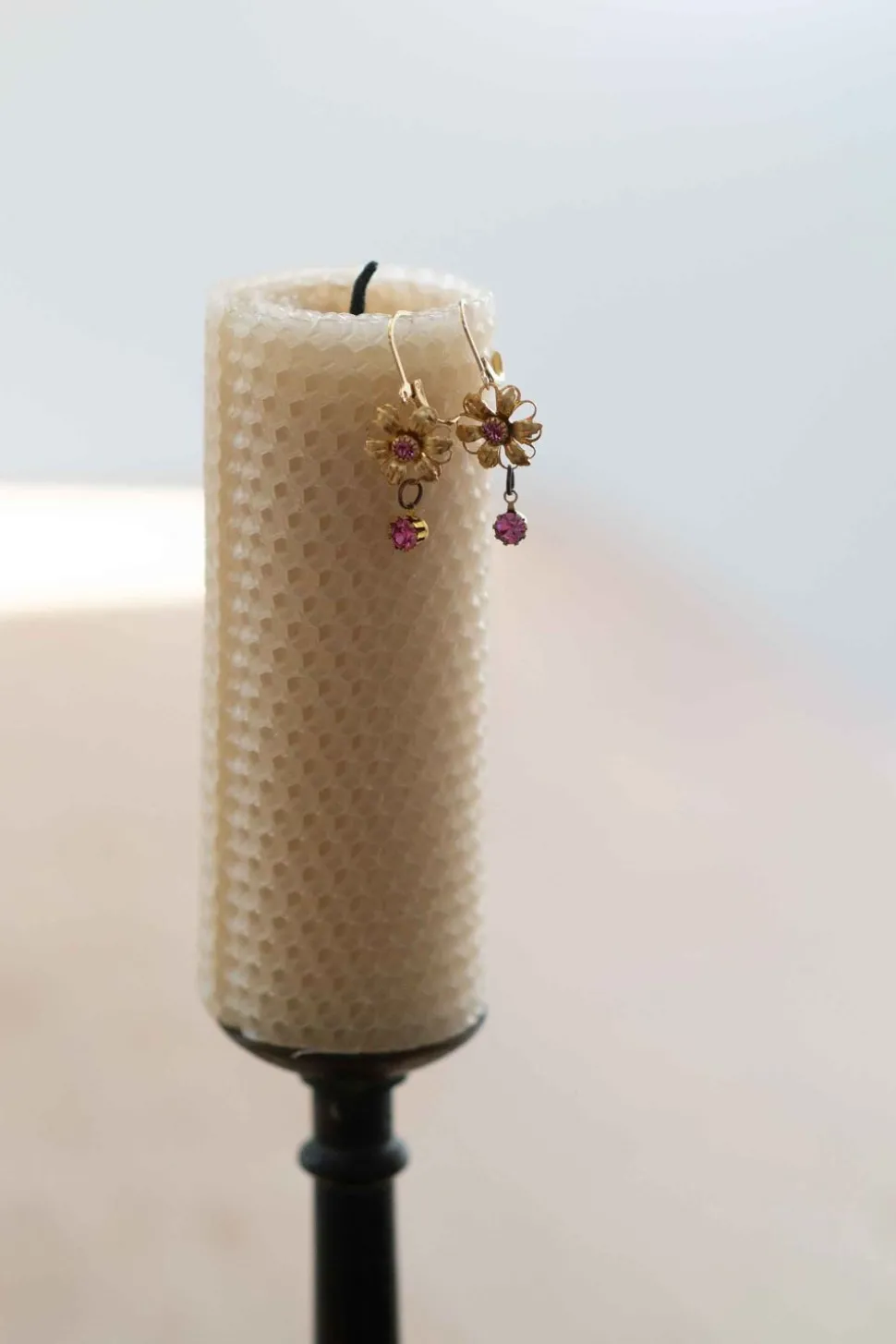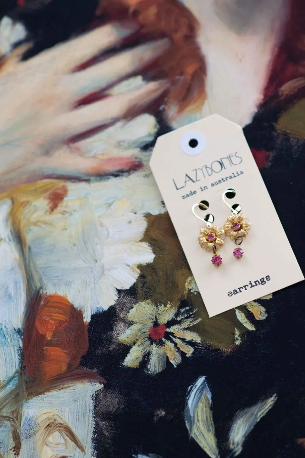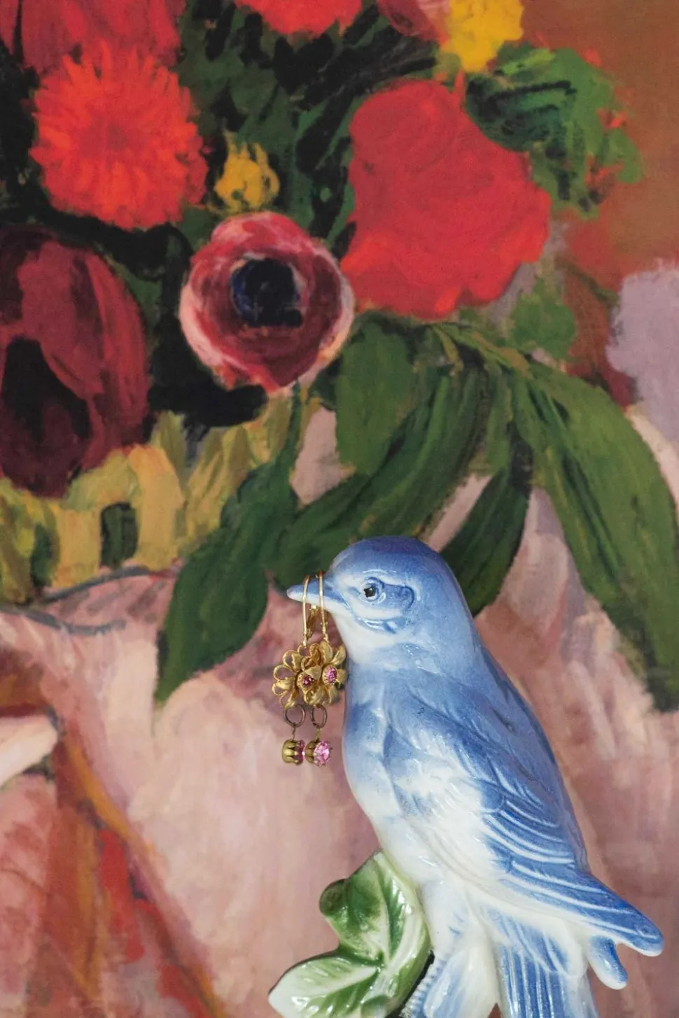 Our New Earrings Feature A Vintage Pink Swarovski Crystal Centre Set In A Multilayer Delicate Brass Flower With Attached Small 1950S Rhinestone Charm.