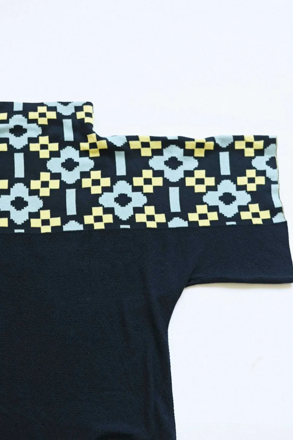 Jacquard Pattern At Front And Back Top Of The Yoke, Sleeves And Neck.