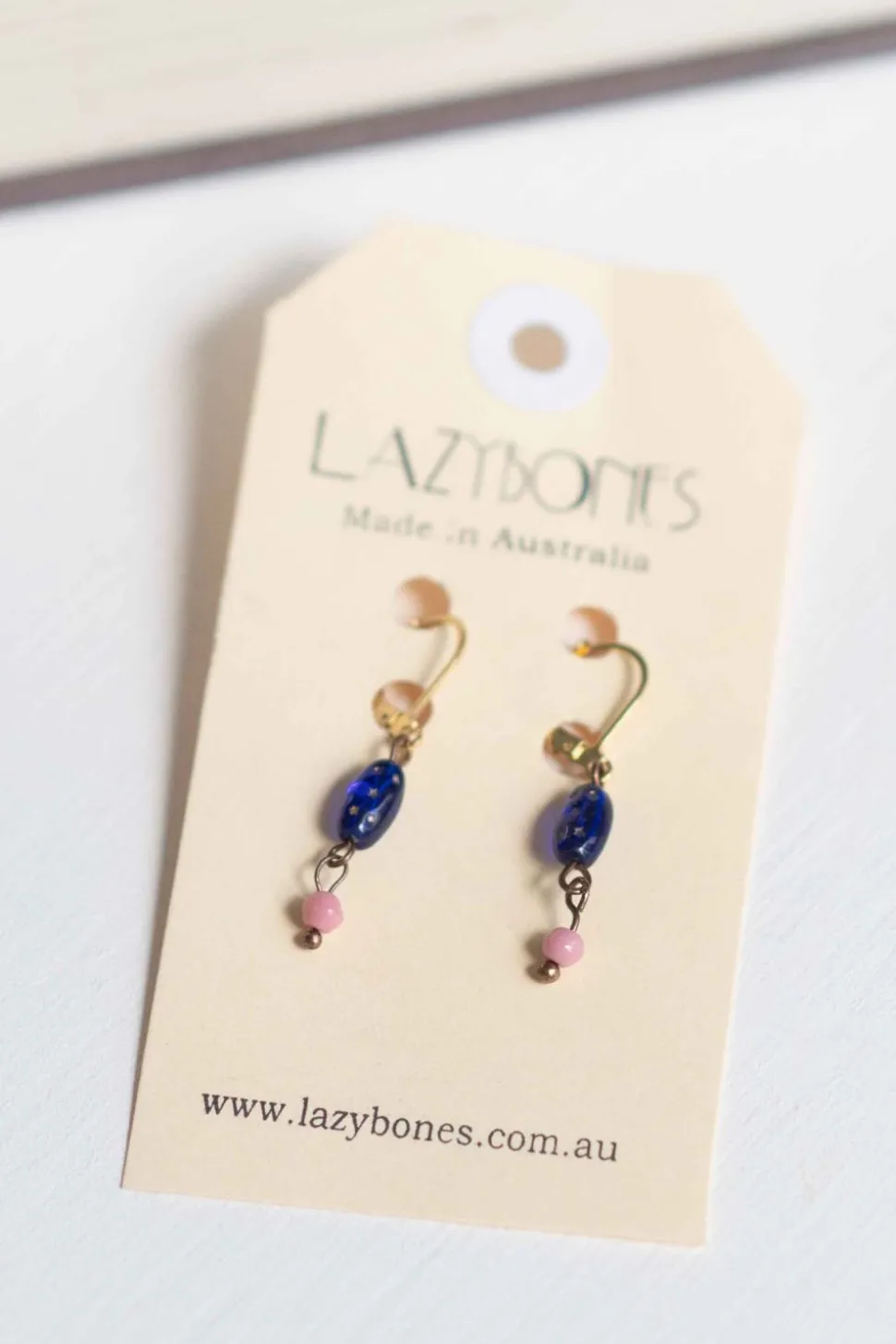 Sweet Little Earrings Featuring Vintage Japanese Glass Beads: The Top One Is An Ultramarine Blue With Inset Dots On The Front And Back &Amp; Hung With Tiny Pink Glass Bead In A Vintage Copper Setting.