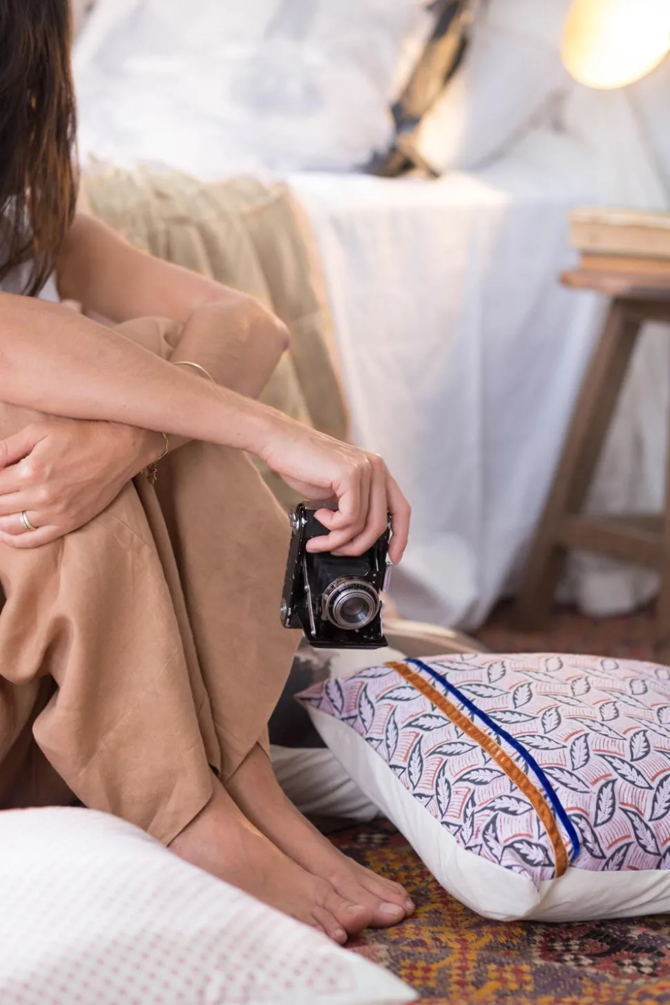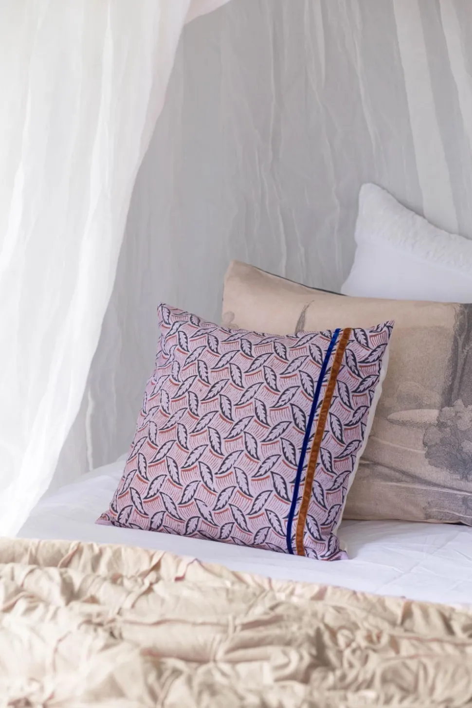 This Cushion Cover Features A Digital Print On Organic Cotton With Hand Sewn Vintage Ribbons Applied.