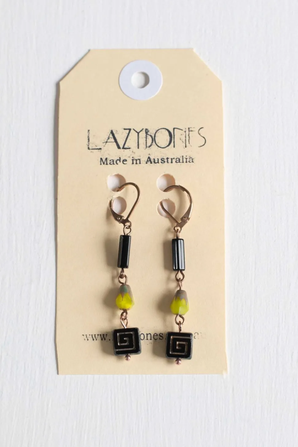 Earrings With A 4.5Cm Long Drop Of Czech Glass Beads.