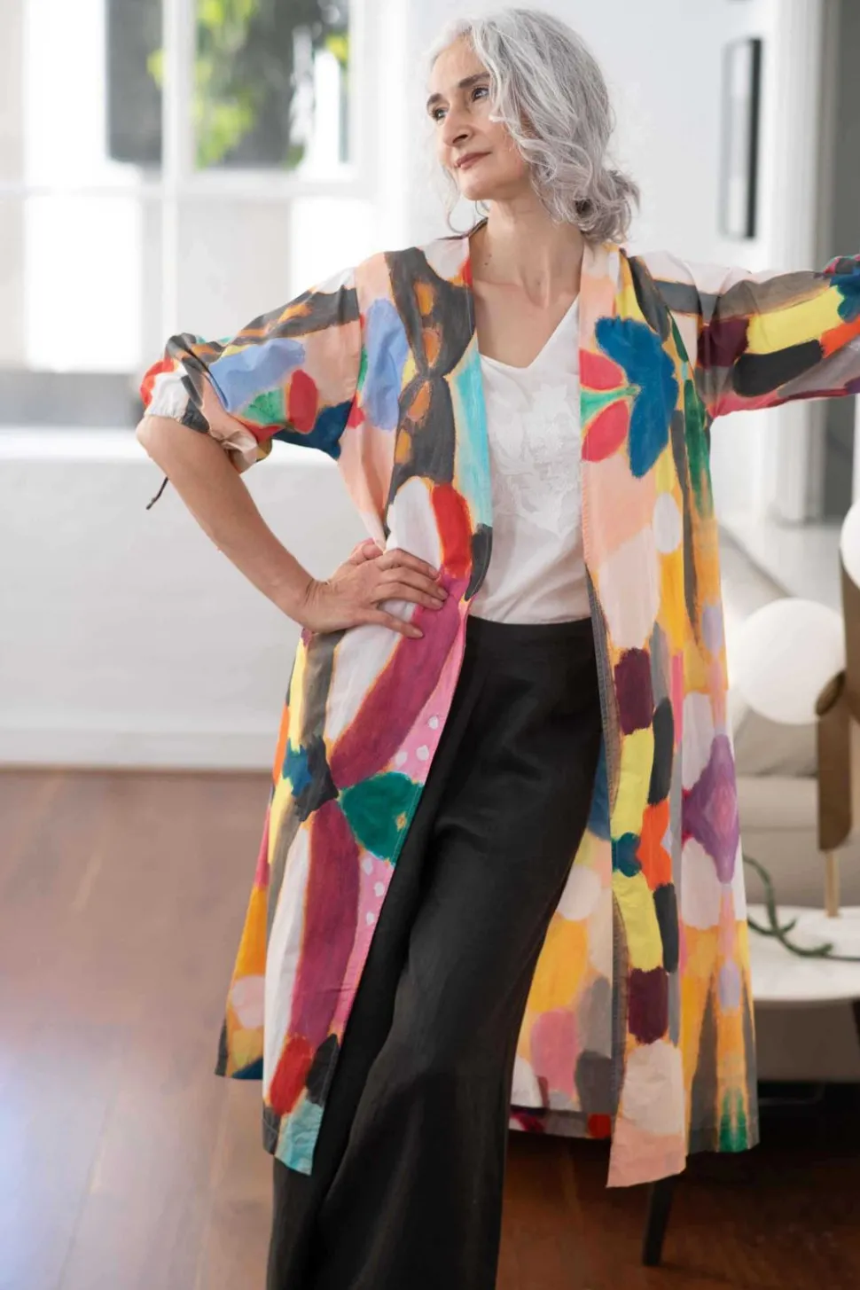 Self Fabric Drawcord In Sleeve Hem To Give Gathering To Sleeve, Or Can Be Worn Loose.
