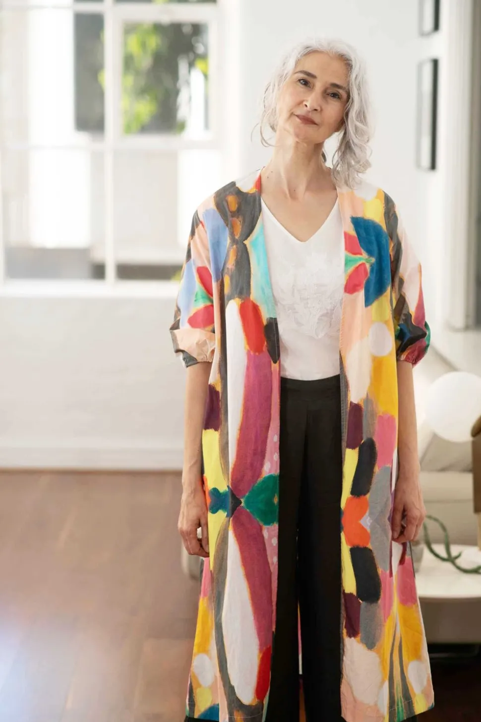 Long Open Style Jacket With 3/4 Sleeves.