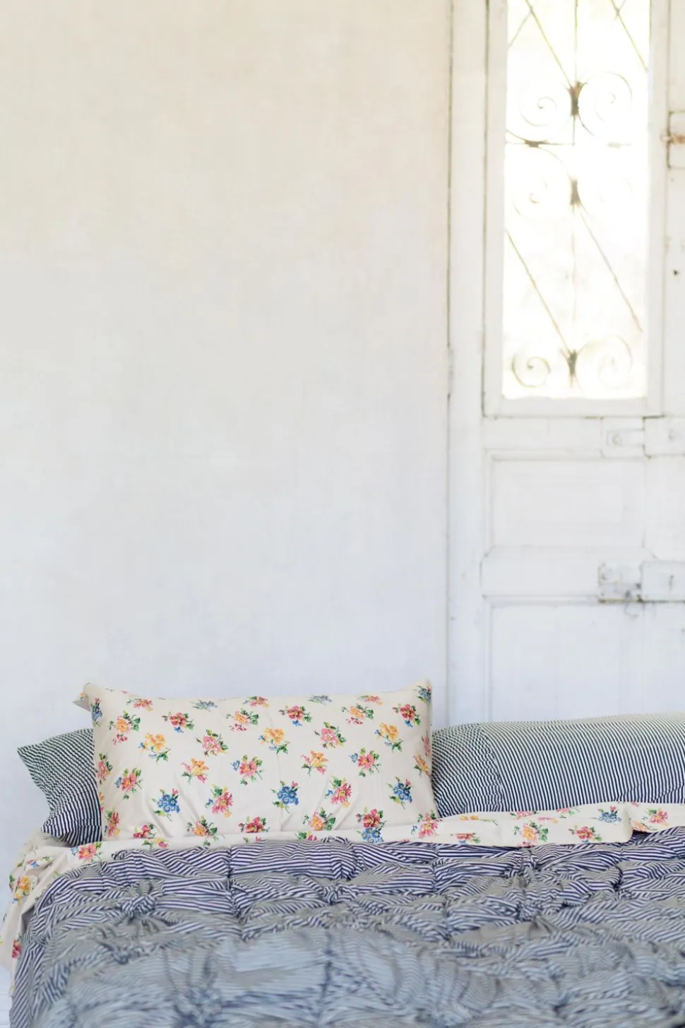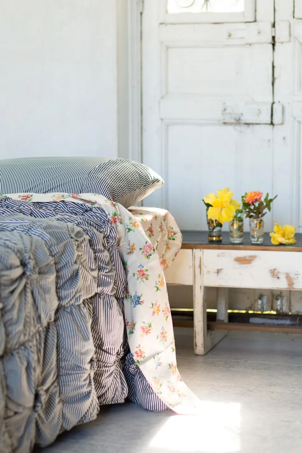 Shown With Charcoal Stripe Rosette Quilt And Prairie And Meadow Sheet Sets