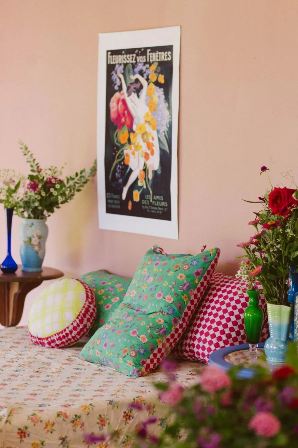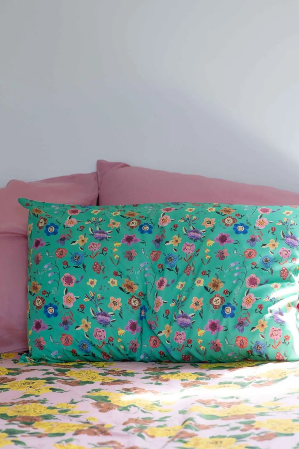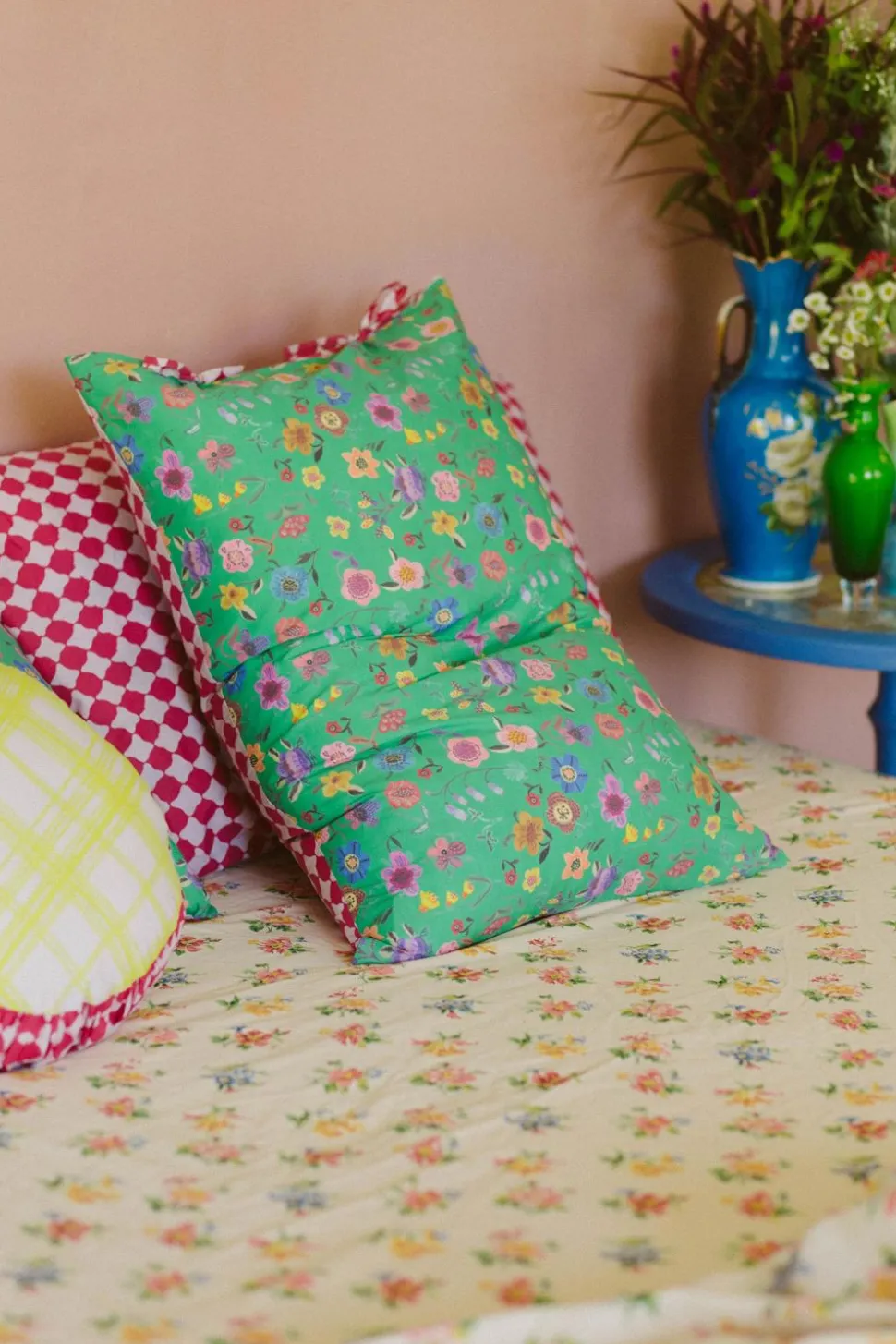 Prairie Folk Pillowcase Set Pictured With Small Round Clan Vienne Cushion, Meadow Sheet Set, Vienna Sheet Set And Garden Quilt