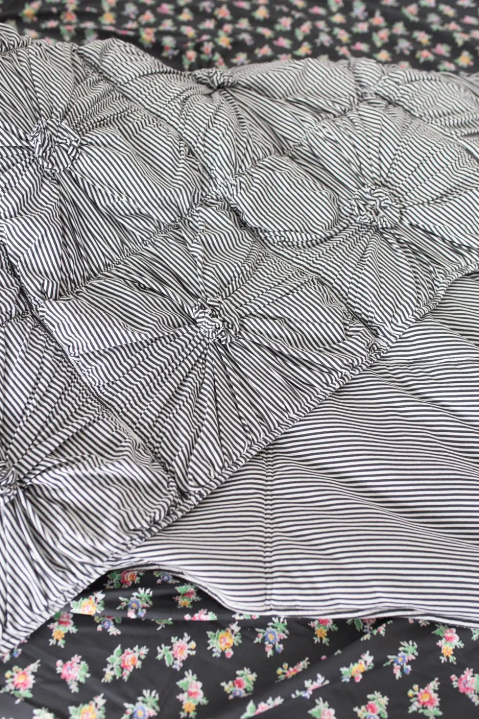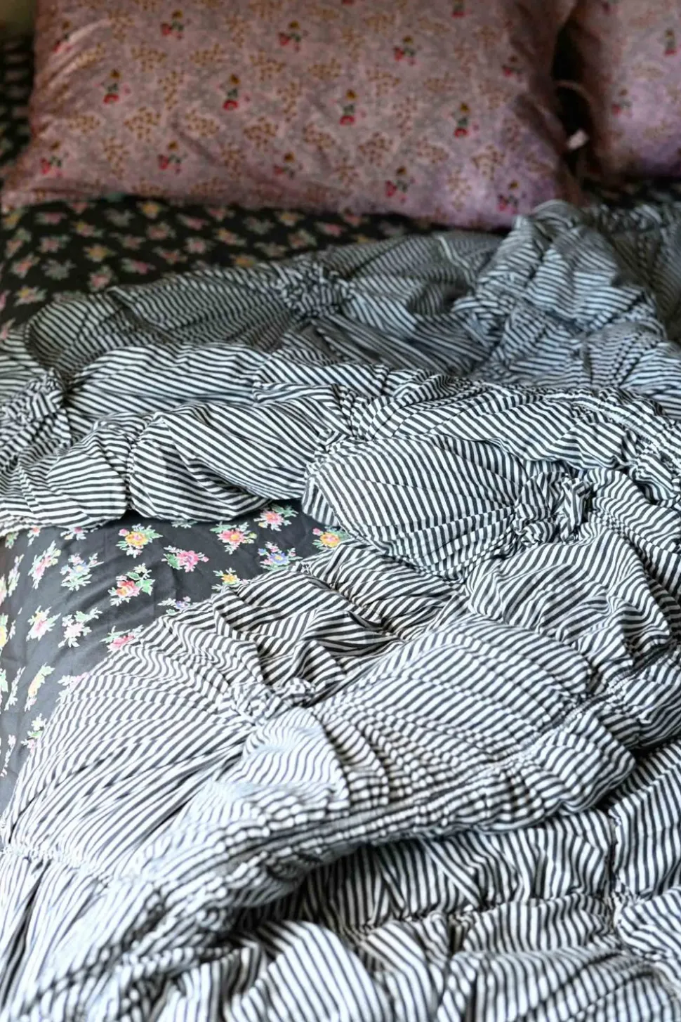 Charcoal And Natural Stripes Feature In This Cosy Jersey Quilt.