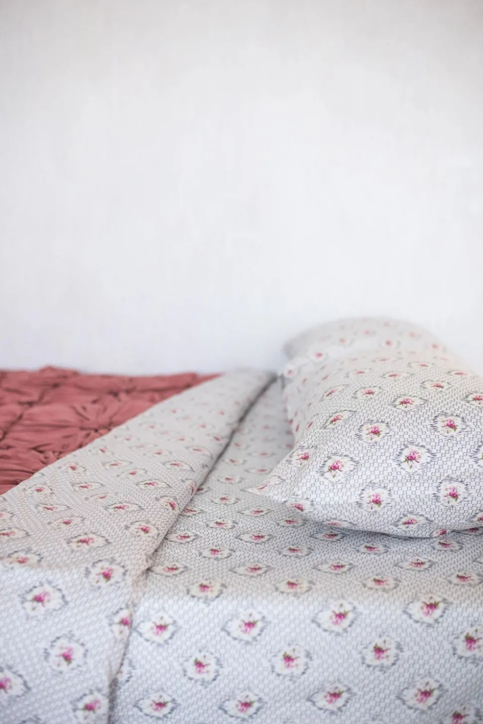 Shown With Rose Linen Euros And Tully Embroidered Cushion Cover.