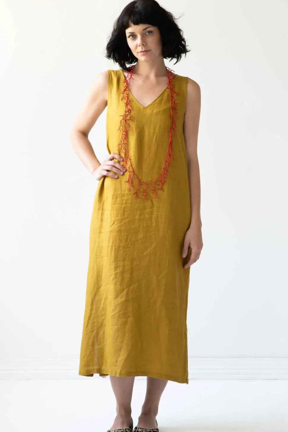 Midi Length Dress With Side Splits At Hem.